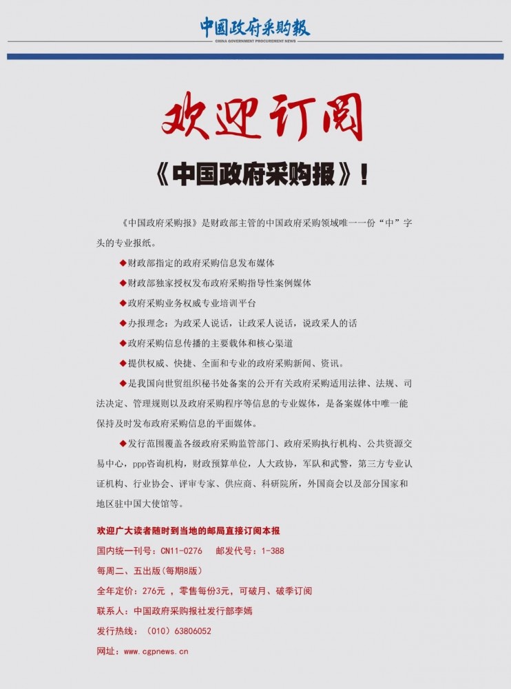 ★本报拥有此文版权,若需转载或复制,请注明来源于中国政府采购报,标注作者,并保持文章的完整性。否则,将追究法律责任。