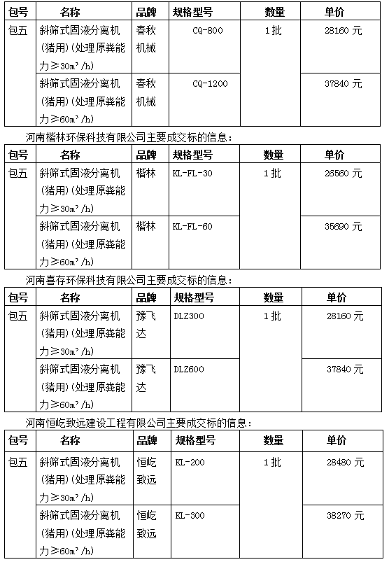 2019年粪污资源化利用项目设备采购(第一批)包五中标结果公告
