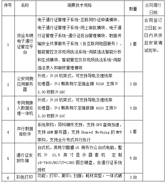 二、采购项目用途、数量、简要技术要求、合同履行日期