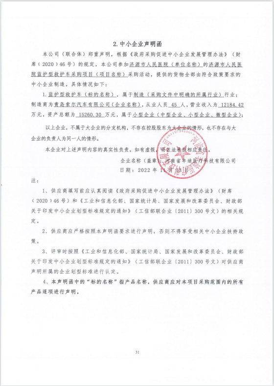 2、 采购项目名称:济源市人民医院监护型救护车采购项目