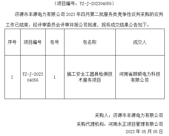 济源市丰源电力有限公司2023年四月第二批服务类竞争性谈判采购成交结果公告